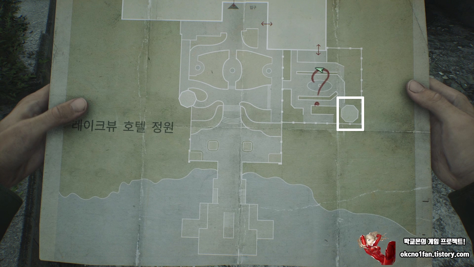 | 18 | ![]() 1층으로 돌아가 107호실로 들어가고, 창문을 통해 호텔 정원으로 나갑니다. |