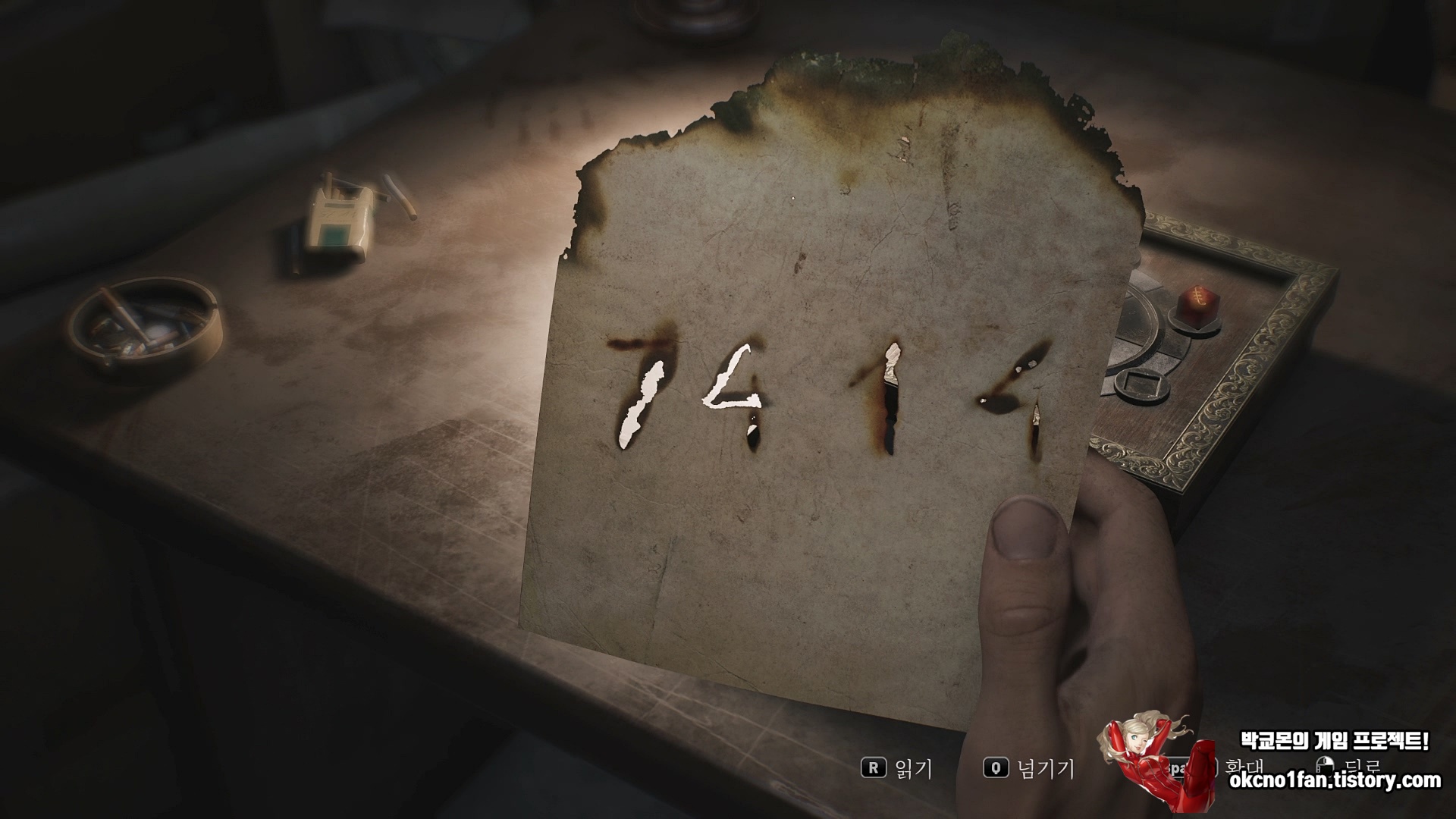 | 7 | ![]() 휴게실 금고에 키패드숫자 메모에 적힌 숫자 7414를 입력해 금고에서 비디오 테이프와 지하실 열쇠를 입수합니다. |